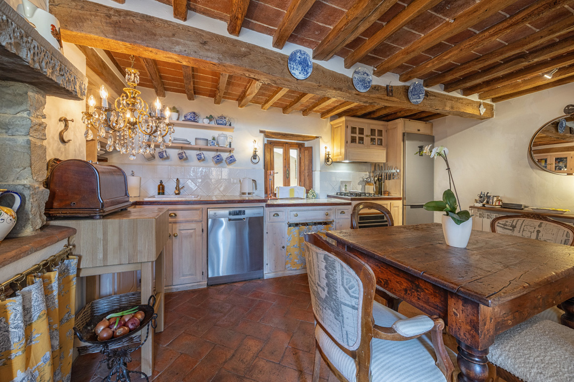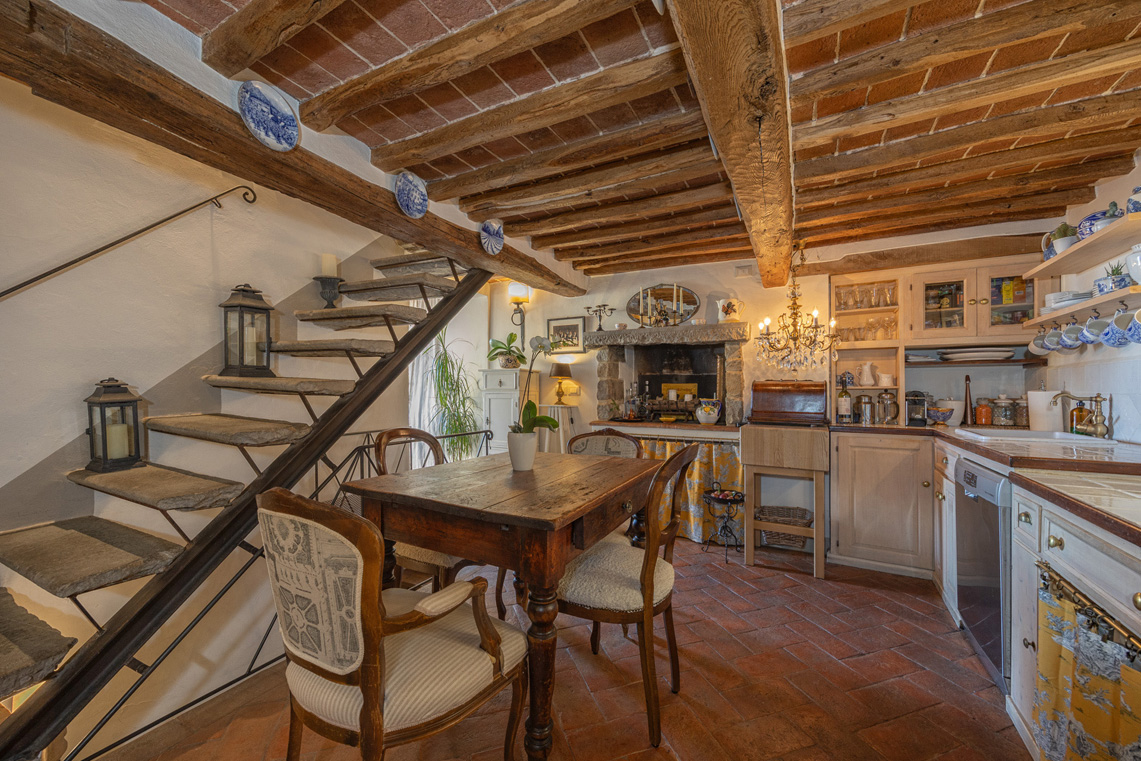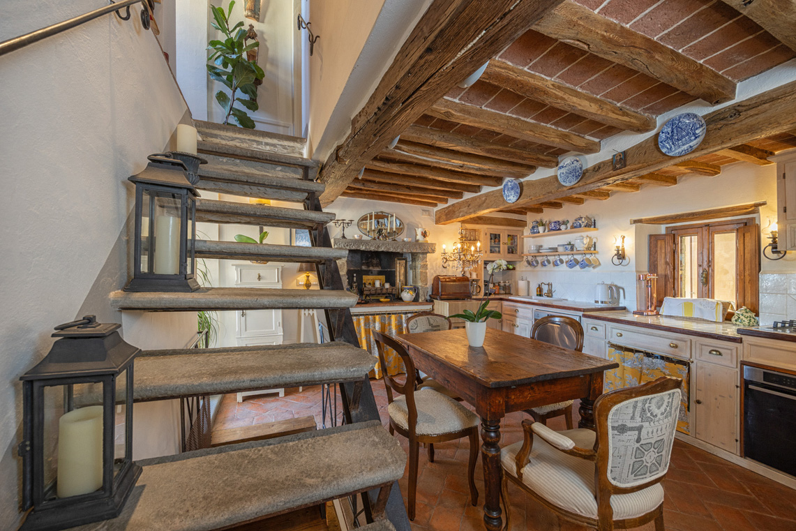 This unique property, featured in Ville & Casali, has been carefully renovated by local artisans, preserving original Tuscan features such as exposed wooden beams, traditional materials, and fully functional fireplaces.